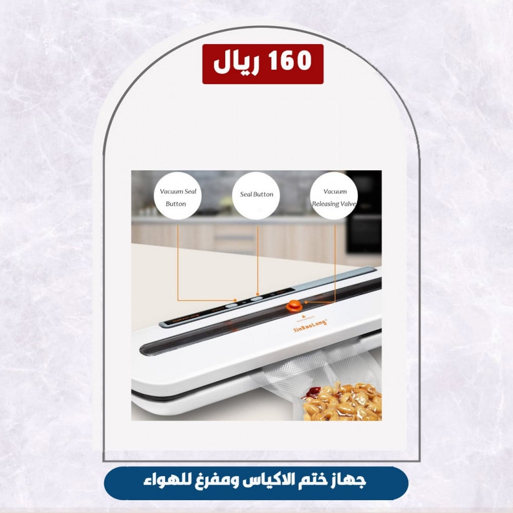 جهاز ختم الأكياس وتفريغ الهواء منها يعتبر جهاز من مهم في كل بيت فإنه يقوم بختم الاكياس بالاضافة لتفريغ الهواء منها، وذلك يحفظ الاطعمة طازجة حين تبريدها او تجميدها وايضا يطيل عمر الاطعمة ويمنع اختلاط الروائح بينها وايضا يقوم بتوفير مساحة اكبر حين يتم سحب الهواء منها.