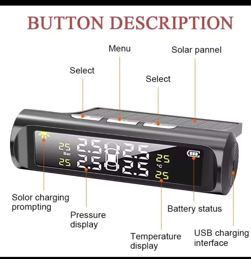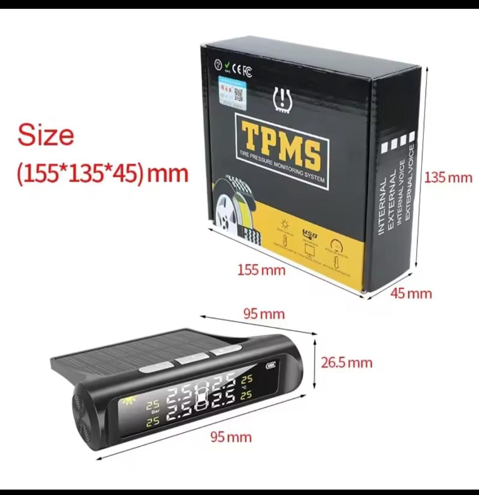 حافظ على سلامتك أثناء القيادة مع جهاز مراقبة ضغط الإطارات الذكي (TPMS)! يتيح لك هذا الجهاز المتطور مراقبة ضغط ودرجة حرارة الإطارات في الوقت الفعلي، مما يساعدك على تجنب الحوادث الناتجة عن انخفاض أو ارتفاع الضغط. يتميز بشاشة رقمية واضحة تعمل بالطاقة الشمسية، مع تنبيهات صوتية ومرئية لتنبيهك بأي مشكلة في الإطارات.