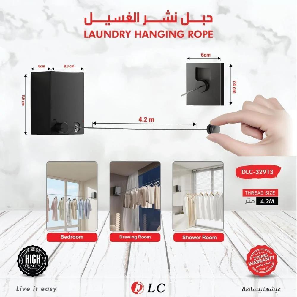 حبل الغسيل القابل للسحب قوي ومتين، مصنوع من مادة ABS عالية الجودة، يمكن تمديد حبل الغسيل بحرية إلى أي طول في حدود 4.2 متر، ويمكنه تحمل حمولة تصل إلى 20 كغم. متعدد الاستخدامات يمكن استخدامه لتعليق الملابس والملاءات واللحاف وما إلى ذلك .