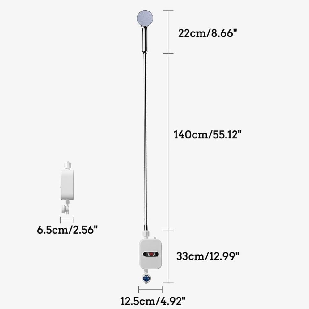 سخان مياه كهربائي فوري صغير الحجم بقدرة 3500 واط، مصمم لتسخين المياه بشكل فوري ومباشر عند الاستخدام. يعمل على كهرباء 110V أو 220V، ويمكن تركيبه بسهولة في الحمام أو المطبخ. يأتي مع دش يدوي وجميع الملحقات اللازمة للتركيب.